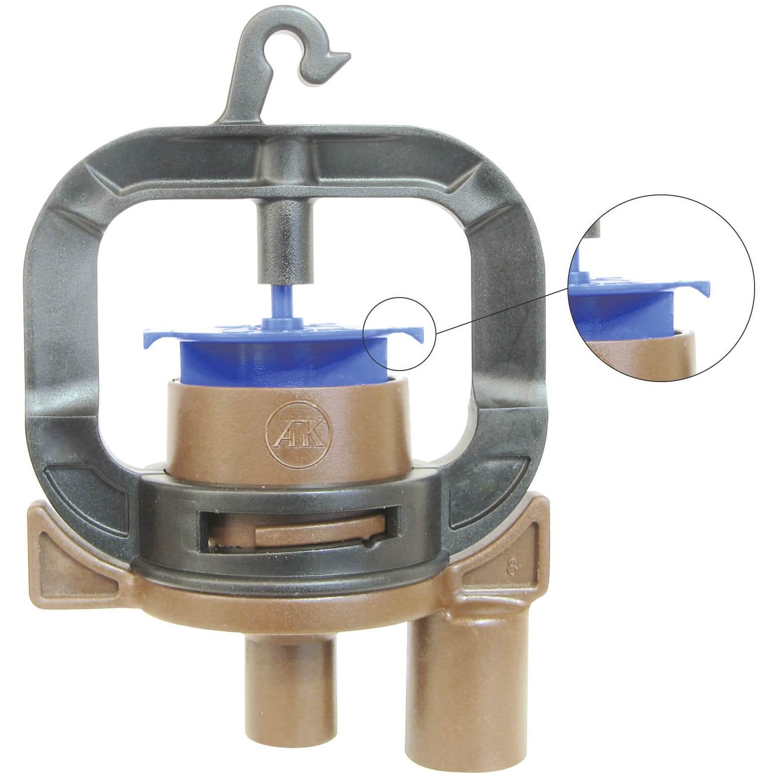 For Reverse mounting. Specially designed spring bearing keeps the anti-ant feature even when the sprinkler is mounted reverse.